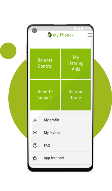Com o aplicativo myPhonak, os usuários podem controlar seus aparelhos auditivos e personalizar os recursos quando e onde desejarem. O aplicativo também permite monitorar dados de saúde, como atividades físicas e contagem de passos, e acessar remotamente o seu fonoaudiólogo.